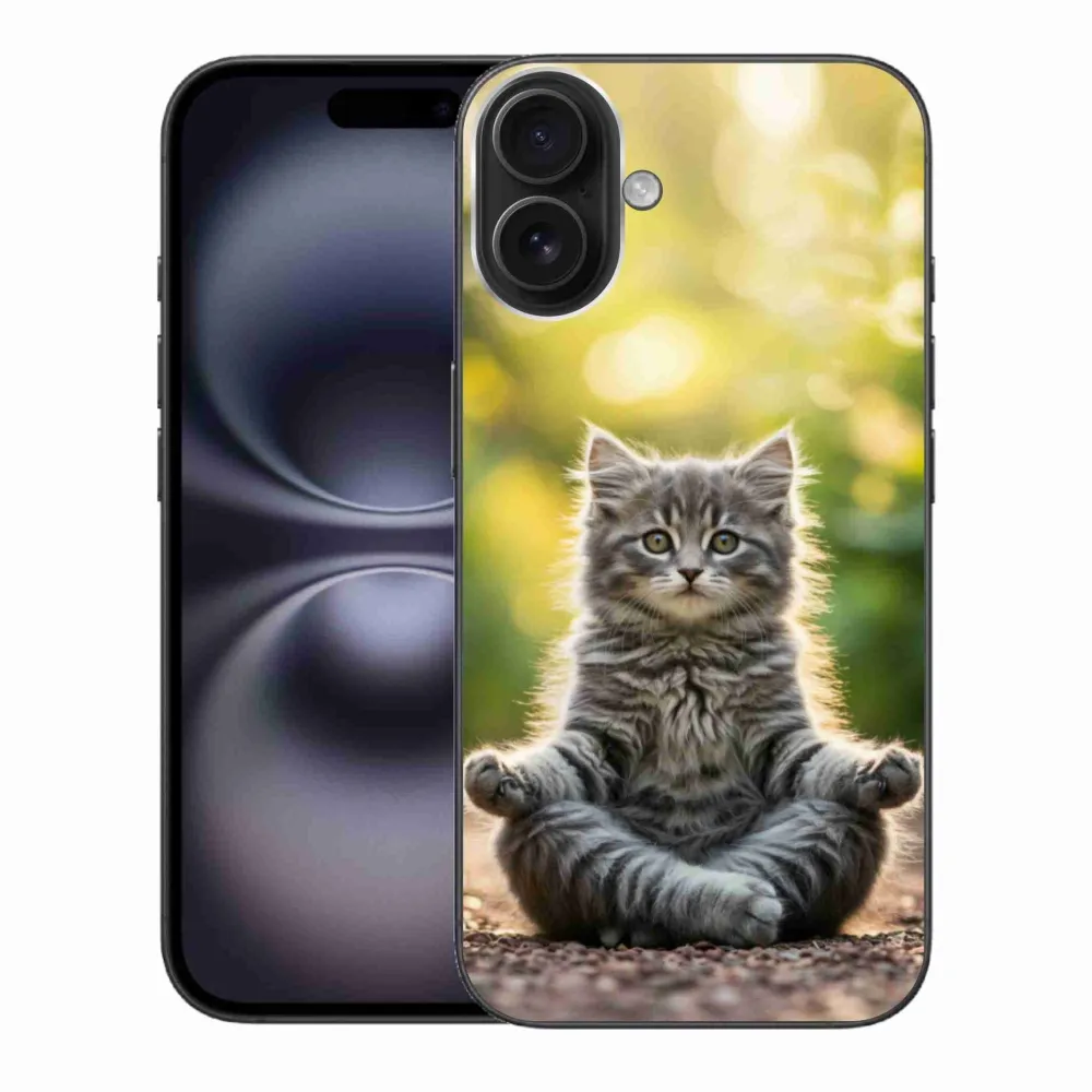 Mačacie púzdro na iPhone 16 Plus - meditujúce mačiatko poskytuje všetky výhody gélových obalov, a to v zaujímavom dizajne.
