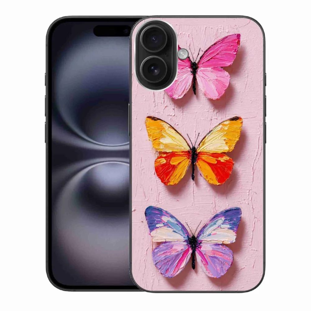 Zvieracie puzdro na iPhone 16 Plus - motýlia trojica poskytuje všetky výhody gélových obalov, a to v zaujímavom dizajne.
