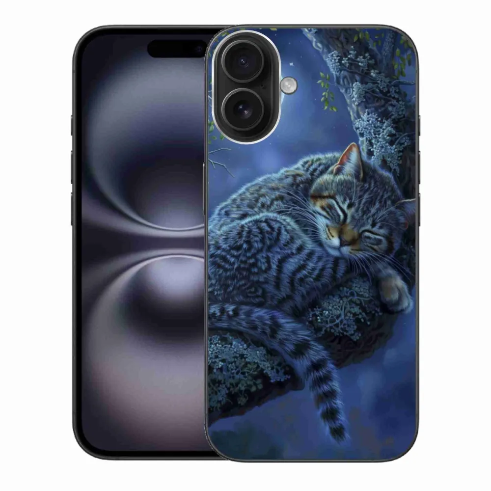 Mačacie púzdro na iPhone 16 Plus - spiaca mačka poskytuje všetky výhody gélových obalov, a to v zaujímavom dizajne.