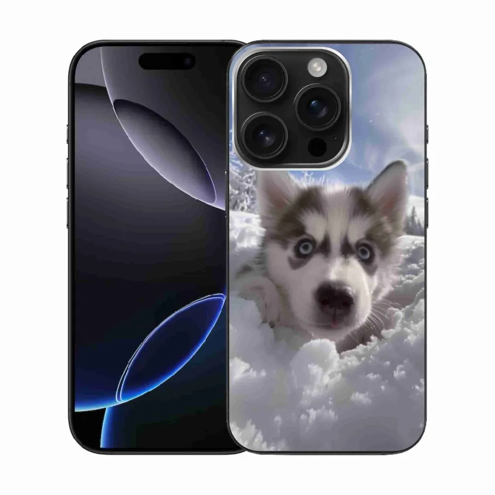 Psie púzdro na iPhone 16 Pro - husky v snehu poskytuje všetky výhody gélových obalov, a to v zaujímavom dizajne.