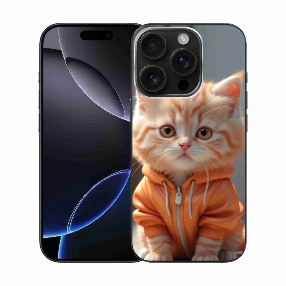 Gélový kryt mmCase na iPhone 16 Pro - mačiatko v mikine