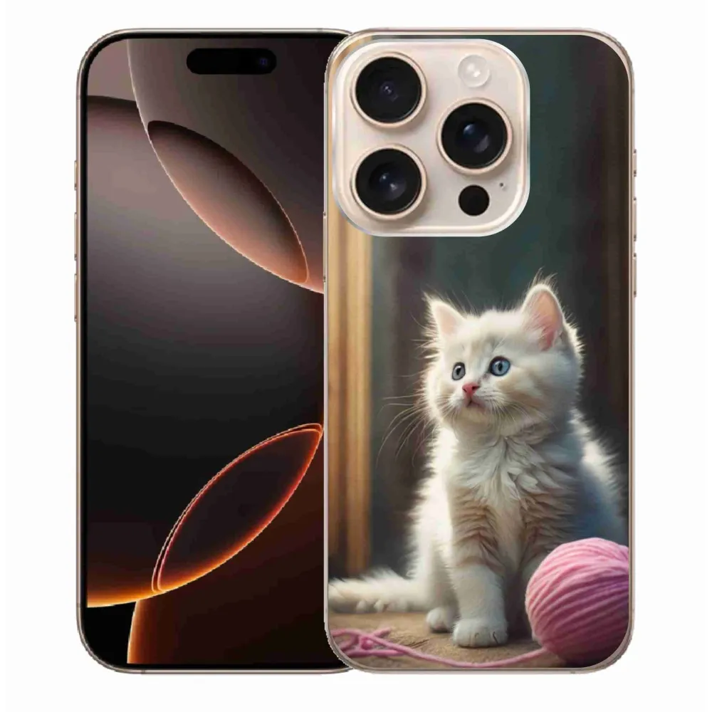 Pružný gélový obal mmCase s obrázkom na iPhone 16 Pro Max - biele mačiatko 2