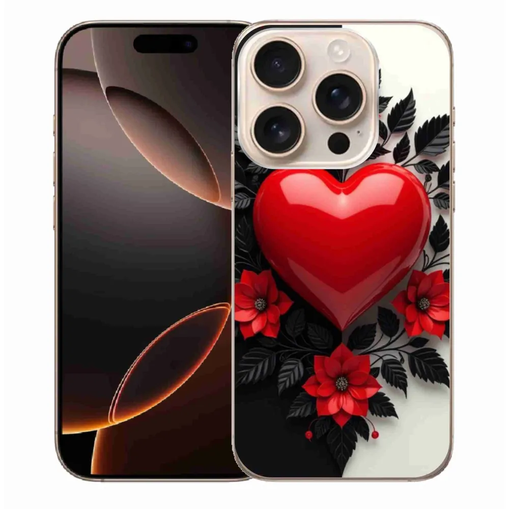 Puzdro na iPhone 16 Pro Max - červené srdce poskytuje všetky výhody gélových obalov, a to v zaujímavom dizajne.
