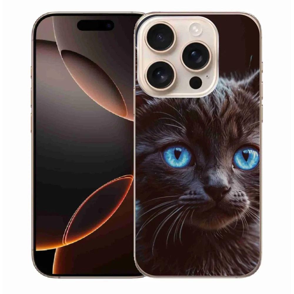 Pružný gélový obal mmCase s obrázkom na iPhone 16 Pro Max - čierne mačiatko 2