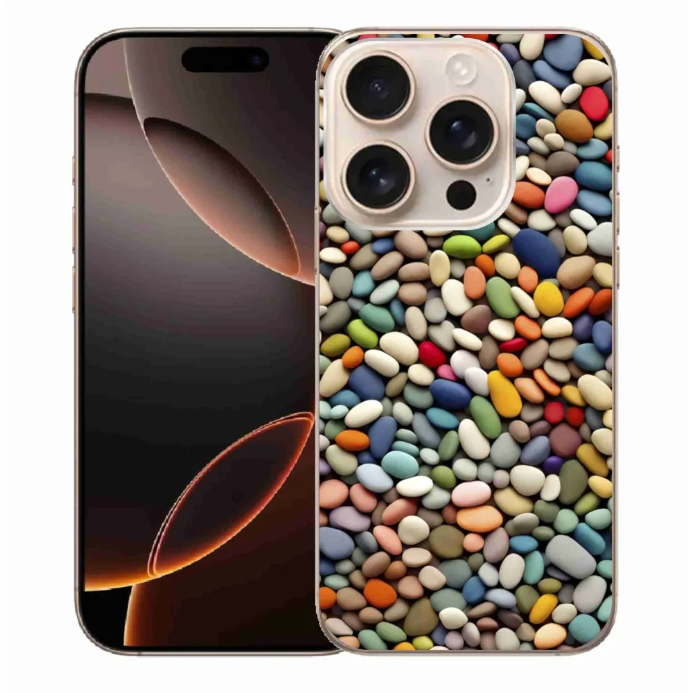Pružný gélový obal mmCase s obrázkom na iPhone 16 Pro Max - farebné kamienky 2