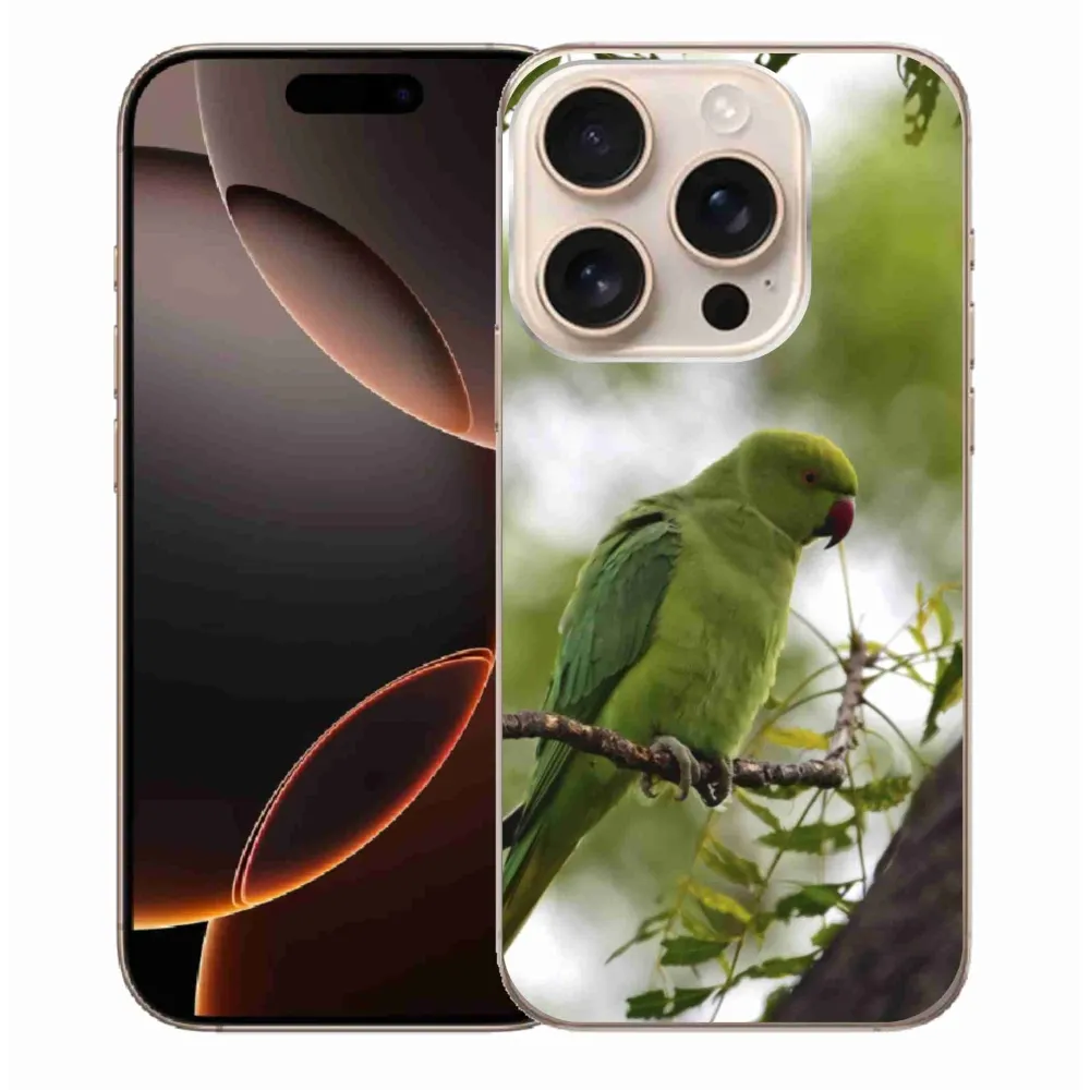 Pružný gélový obal mmCase s obrázkom na iPhone 16 Pro Max - zelený papagáj
