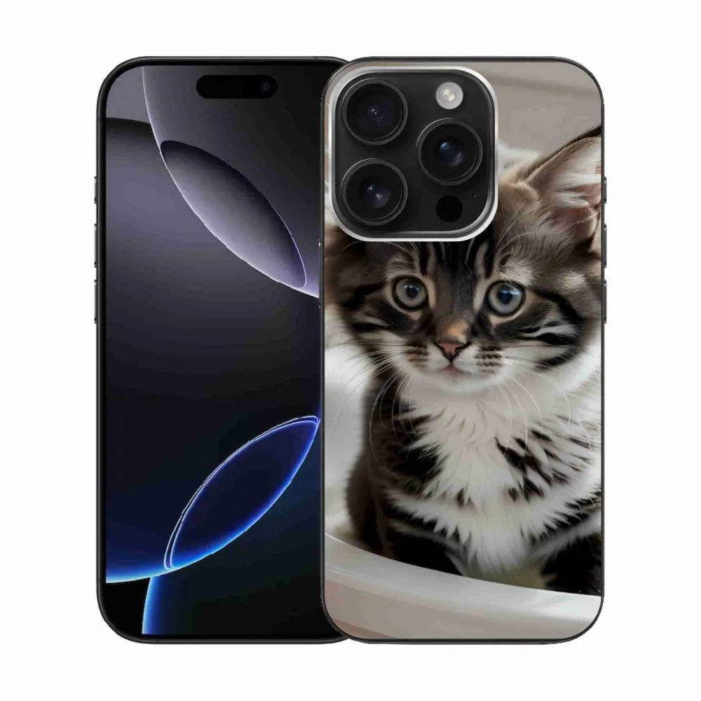 Mačacie púzdro na iPhone 16 Pro - zvedavé mačiatko poskytuje všetky výhody gélových obalov, a to v zaujímavom dizajne.