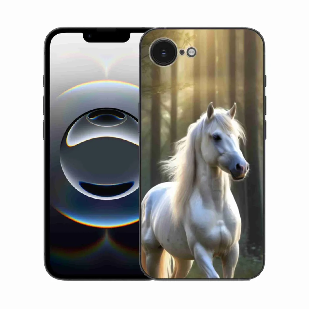 Pružný gélový obal mmCase s obrázkom na iPhone 16e - biely kôň 3
