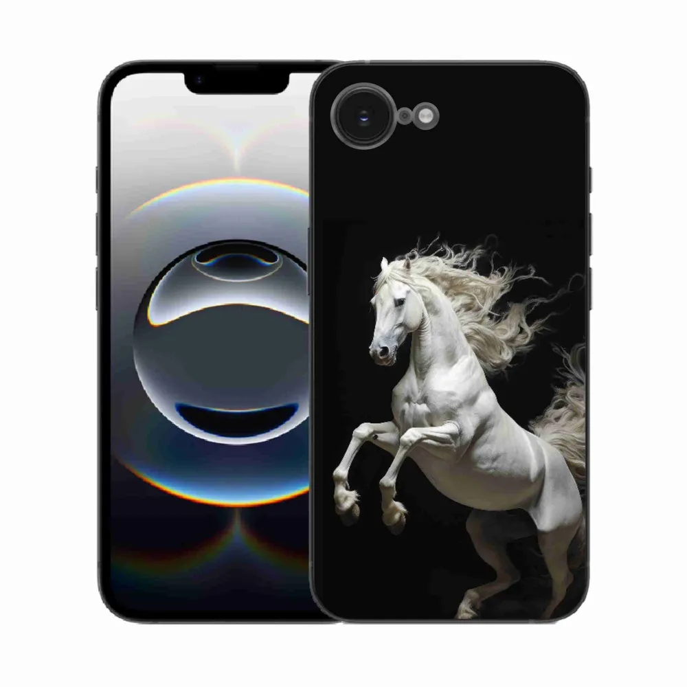 Pružný gélový obal mmCase s obrázkom na iPhone 16e - biely kôň 4