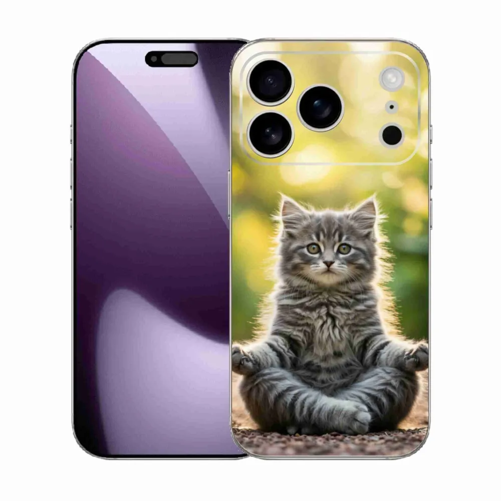 Mačacie púzdro na iPhone 17 Pro - meditujúce mačiatko poskytuje všetky výhody gélových obalov, a to v zaujímavom dizajne.