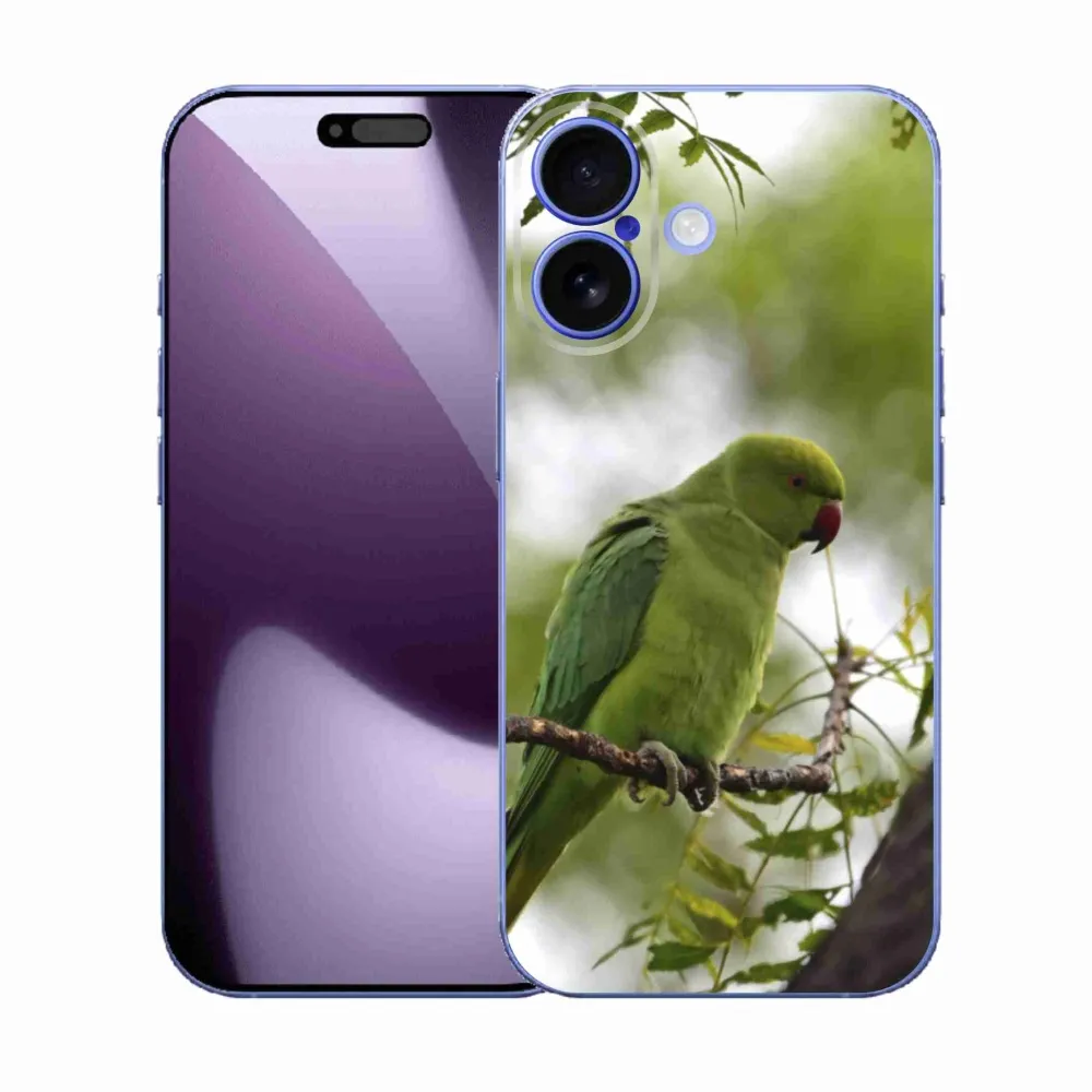 Pružný gélový obal mmCase s obrázkom na iPhone 17 - zelený papagáj