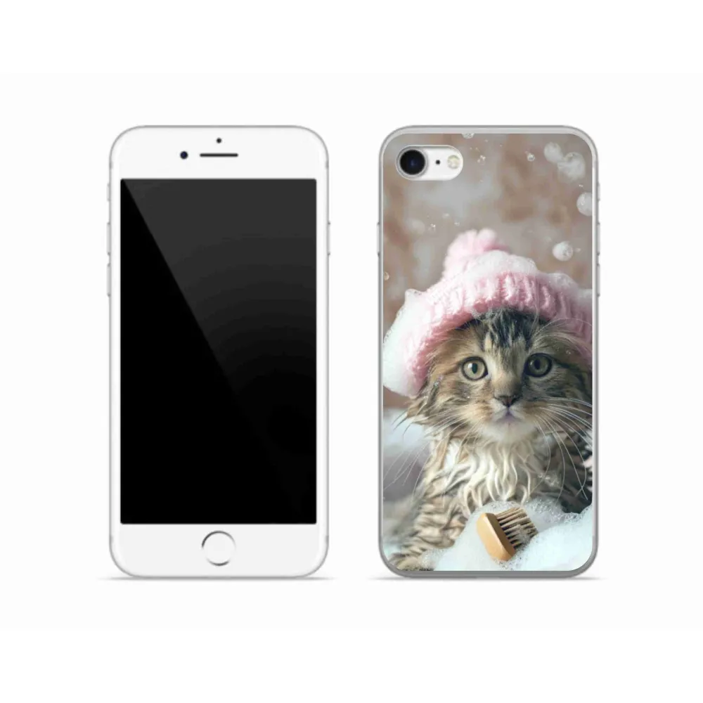 Mačacie púzdro na iPhone SE (2022) - mačiatko a kúpeľ poskytuje všetky výhody gélových obalov, a to v zaujímavom dizajne.