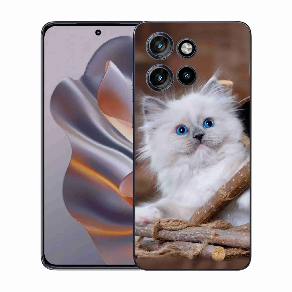Pružný gélový obal mmCase s obrázkom na Motorola Edge 50 Neo - biele mačiatko