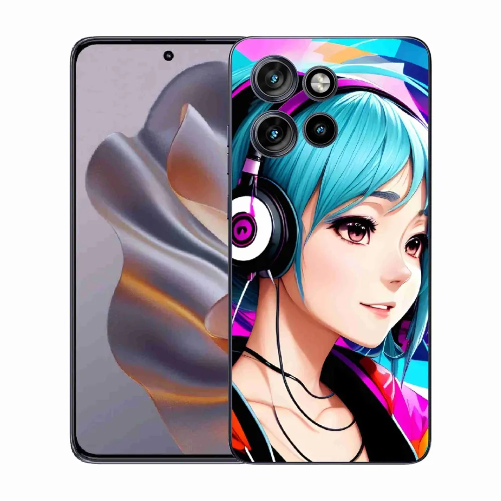 Púzdro s motívom dievča so slúchadlami na Motorola Edge 50 Neo poskytuje všetky výhody gélových obalov, a to v zaujímavom dizajne.