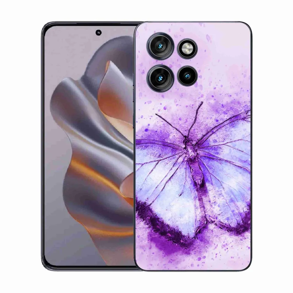 Motýlie puzdro na Motorola Edge 50 Neo - fialový motýľ poskytuje všetky výhody gélových krytov, a to v zaujímavom dizajne.