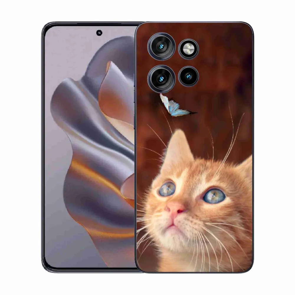Motýlie puzdro na Motorola Edge 50 Neo - motýľ a mačiatko poskytuje všetky výhody gélových krytov, a to v zaujímavom dizajne.