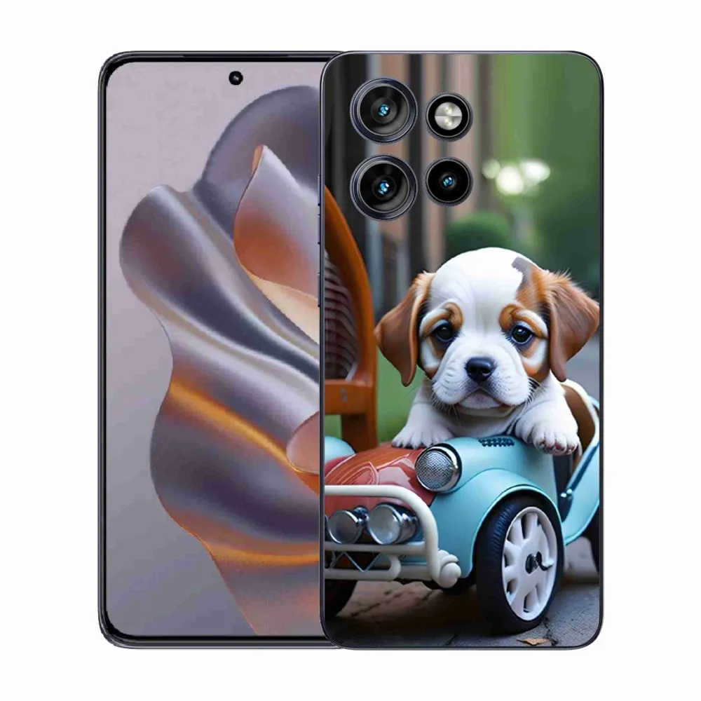 Pružný gélový obal mmCase s obrázkom na Motorola Edge 50 Neo - šteňa v retro aute