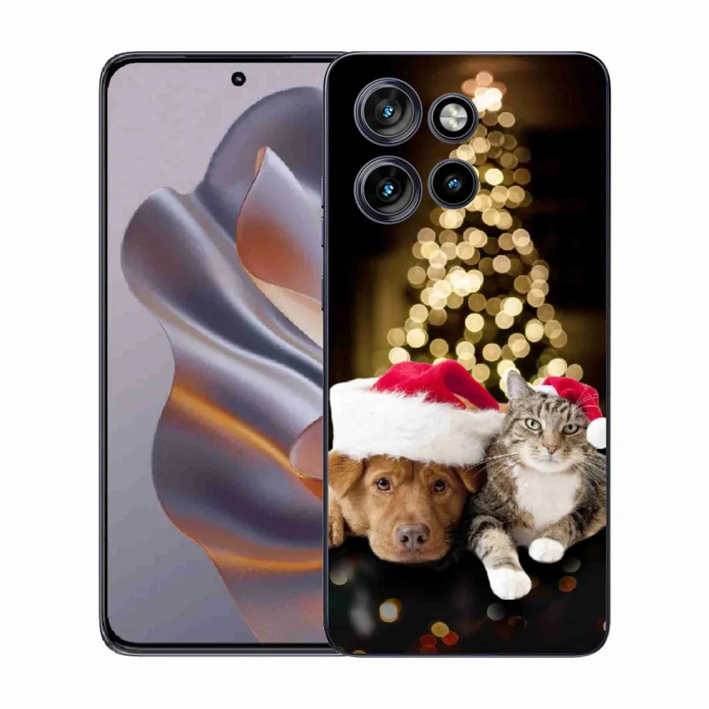Vianočné puzdro na Motorola Edge 50 Neo - vianočný pes a mačka poskytuje všetky výhody gélových obalov, a to v zaujímavom dizajne.