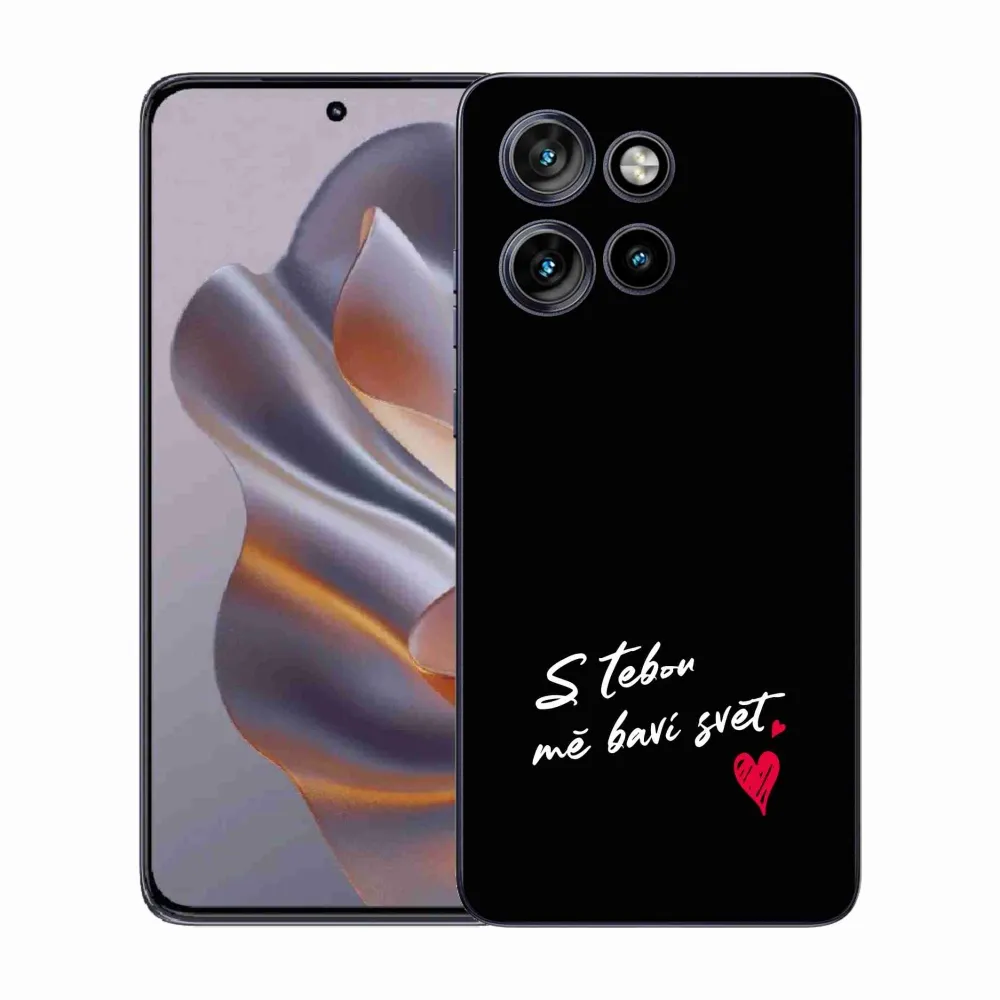 Pružný gélový obal mmCase s obrázkom na Motorola Edge 50 Neo - zamilovaný text 1 čierne pozadie