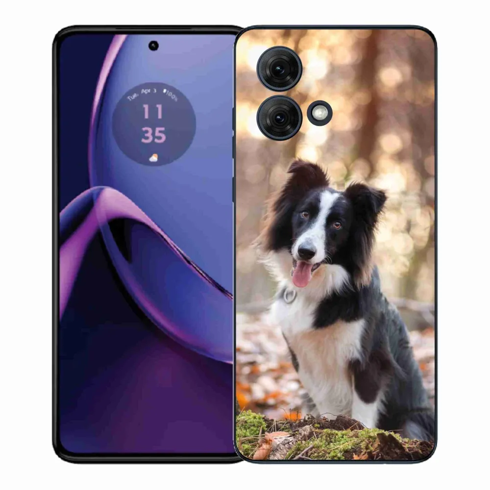 Psie púzdro na Motorola Moto G84 5G - border kolie 1 poskytuje všetky výhody gélových obalov, a to v zaujímavom dizajne.