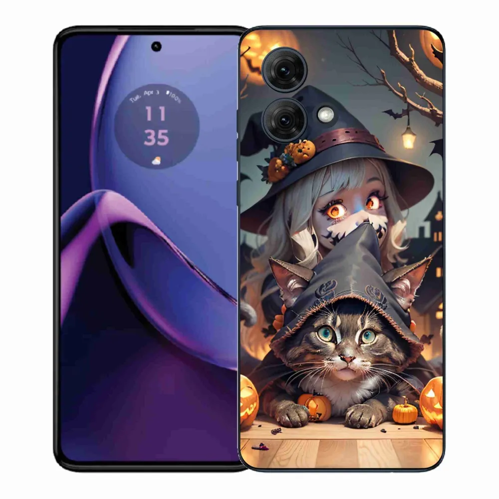 Mačacie púzdro na Motorola Moto G84 5G - čarodejnice s mačkou poskytuje všetky výhody gélových krytov, a to v zaujímavom dizajne.