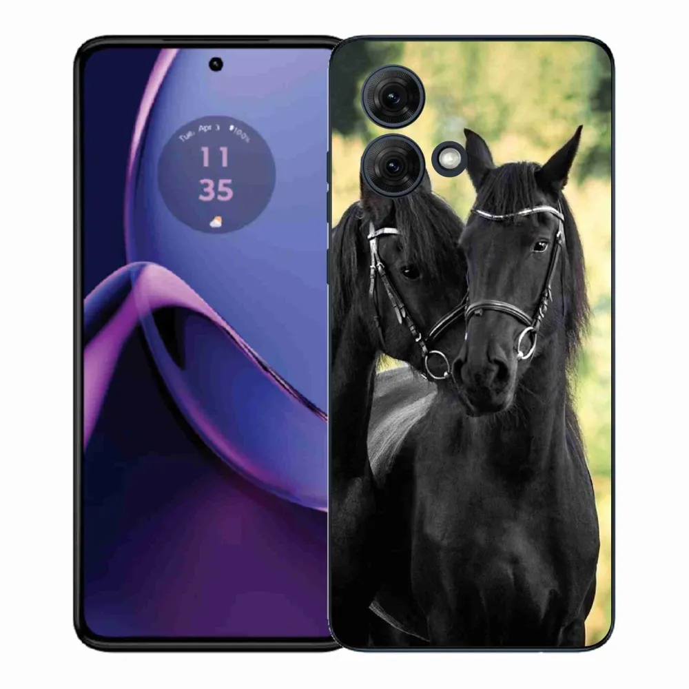 Pružný gélový obal mmCase s obrázkom na Motorola Moto G84 5G - dva čierne kone