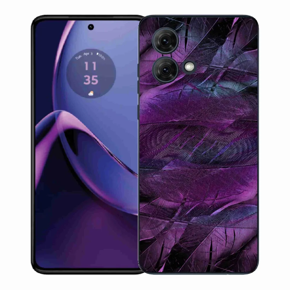 Pružný gélový obal mmCase s obrázkom na Motorola Moto G84 5G - fialové pierka