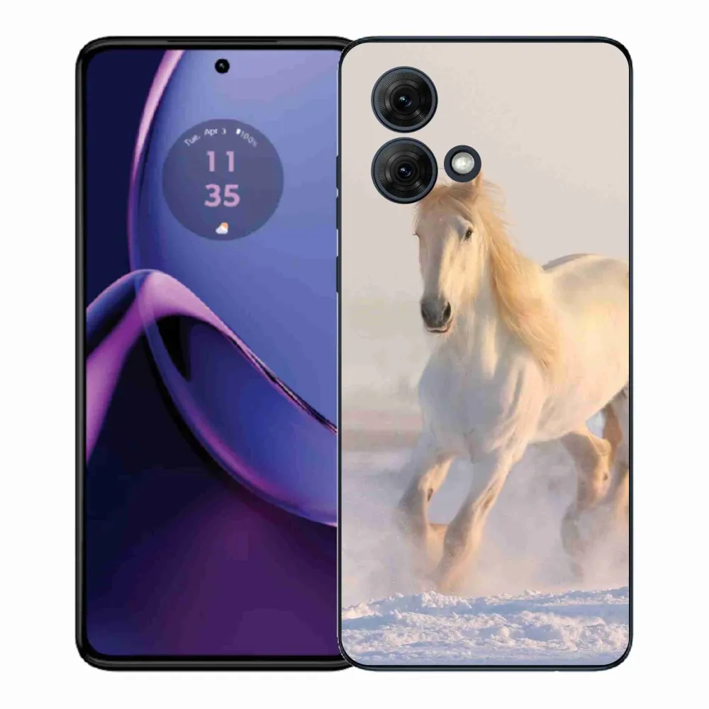 Pružný gélový obal mmCase s obrázkom na Motorola Moto G84 5G - kôň v snehu