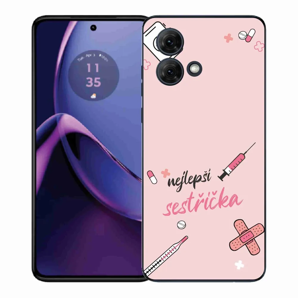 Púzdro s motívom zdravotníctva na Motorola Moto G84 5G - najlepšia sestrička ružové pozadie poskytuje všetky výhody gélových obalov, a to v zaujímavom dizajne.