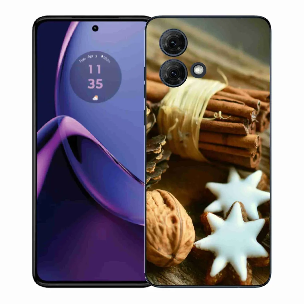 Vianočné puzdro na Motorola Moto G84 5G - škorica a perníčky poskytuje všetky výhody gélových obalov, a to v zaujímavom dizajne.