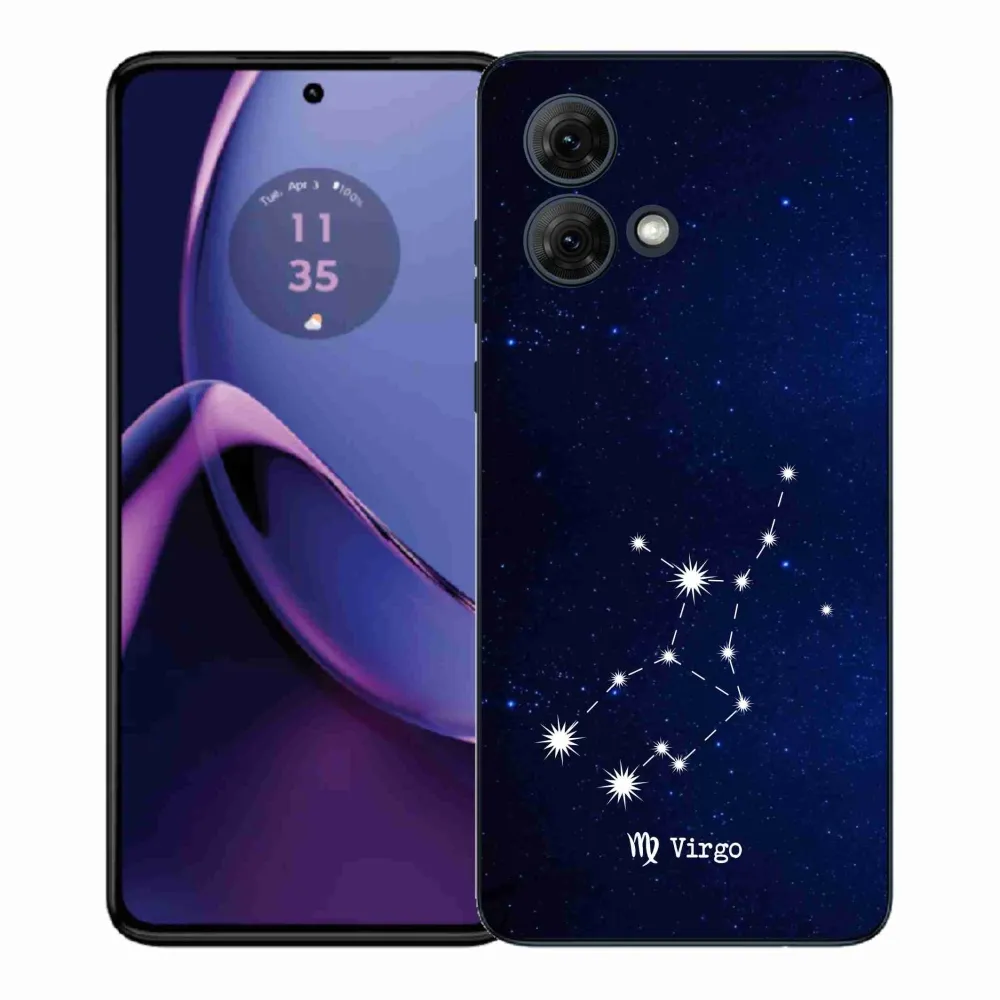 Puzdro so zverokruhom na Motorola Moto G84 5G - súhvezdie Panny poskytuje všetky výhody gélových obalov, a to v zaujímavom dizajne.