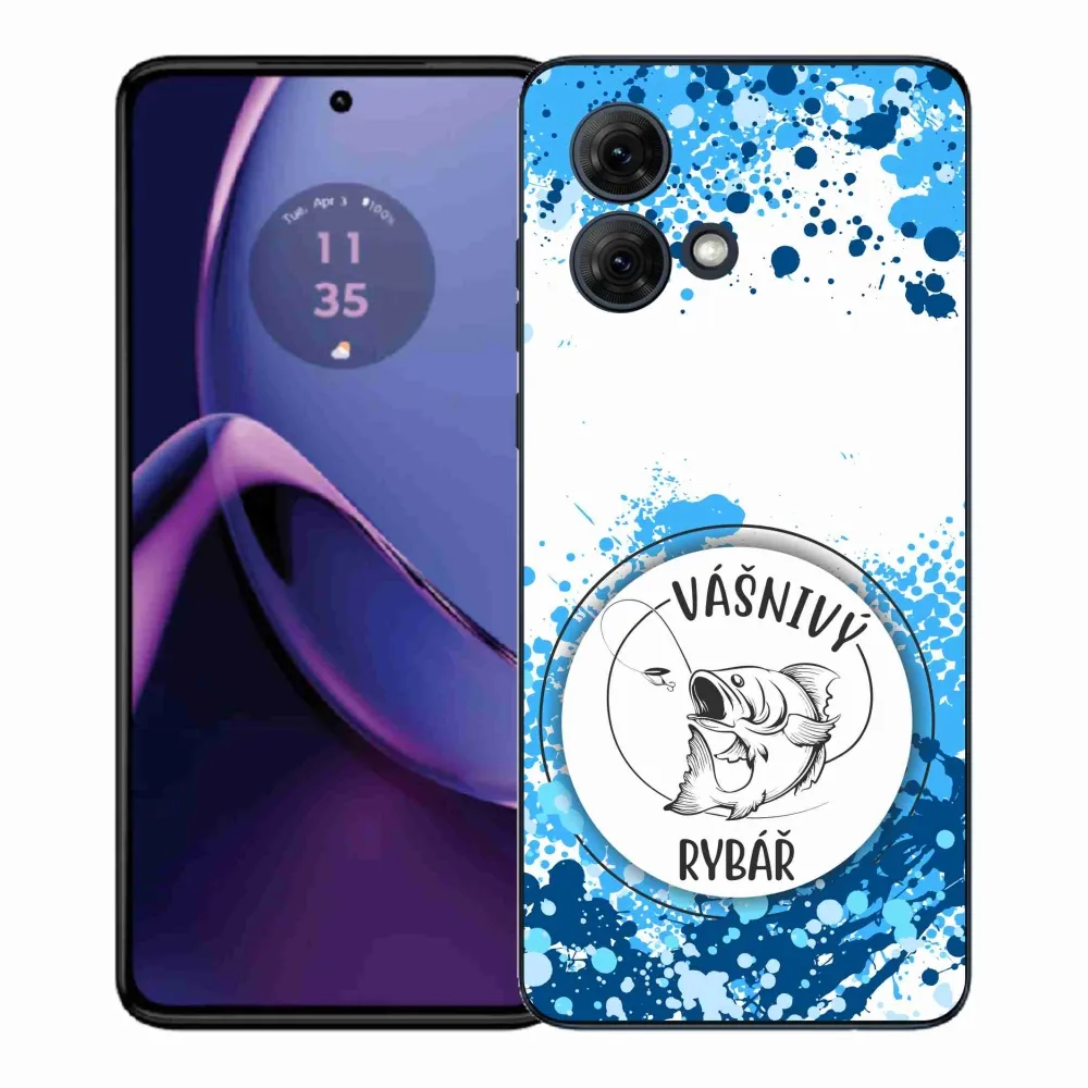 Pružný gélový obal mmCase s obrázkom na Motorola Moto G84 5G - vášnivý rybár biele pozadie