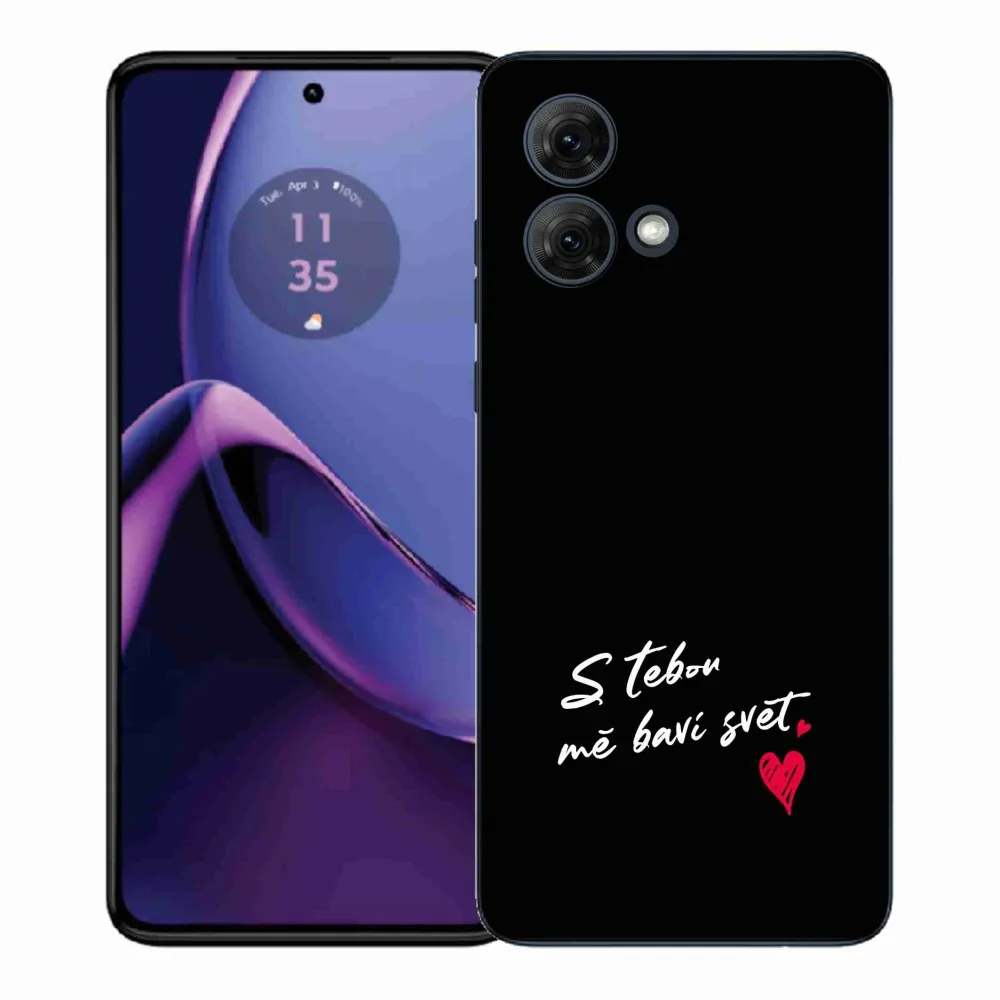 Pružný gélový obal mmCase s obrázkom na Motorola Moto G84 5G - zamilovaný text 1 čierne pozadie