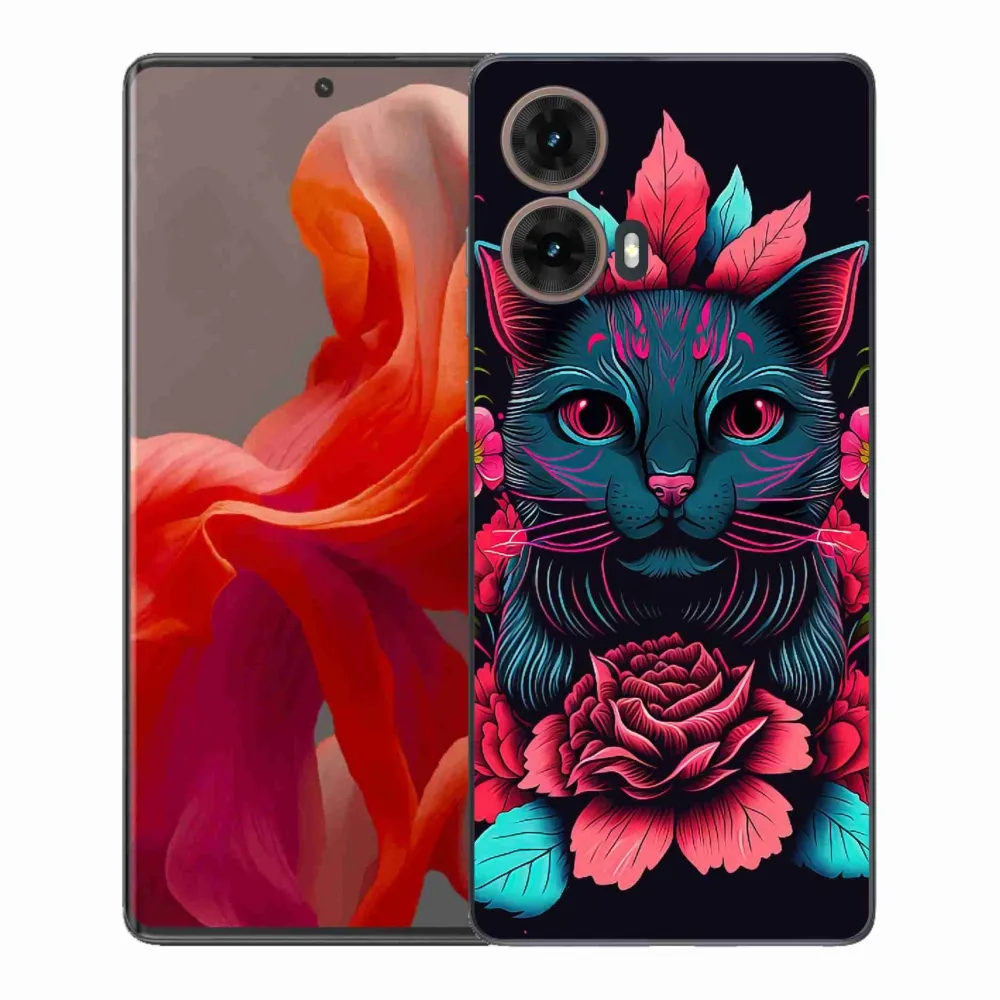 Pružný gélový obal mmCase s obrázkom na Motorola Moto G85 5G - kvety a mačka