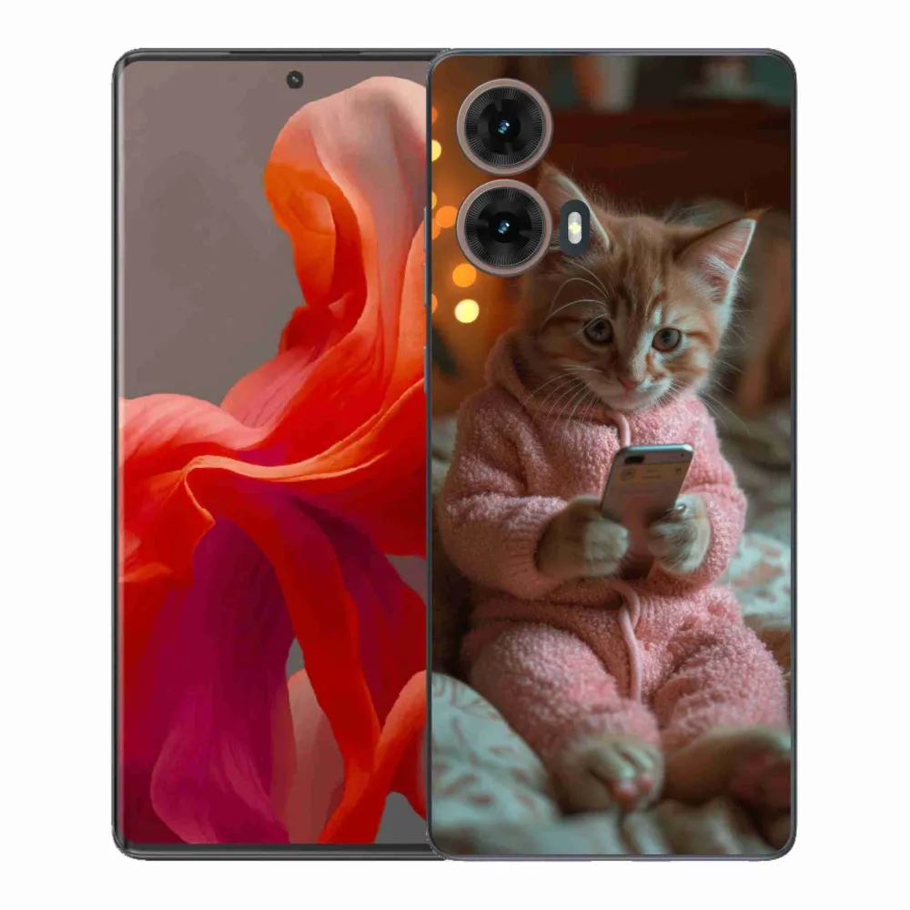 Pružný gélový obal mmCase s obrázkom na Motorola Moto G85 5G - mačiatko s mobilom
