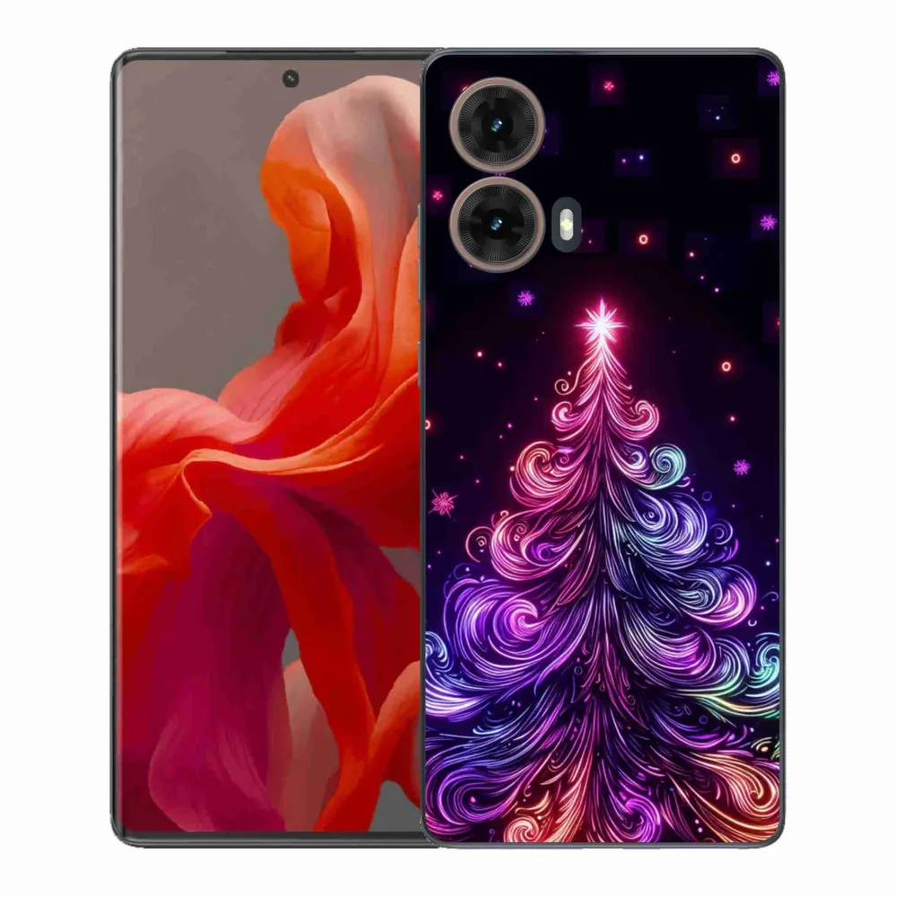 Vianočné puzdro na Motorola Moto G85 5G - neónový vianočný stromček 1 poskytuje všetky výhody gélových obalov, a to v zaujímavom dizajne.