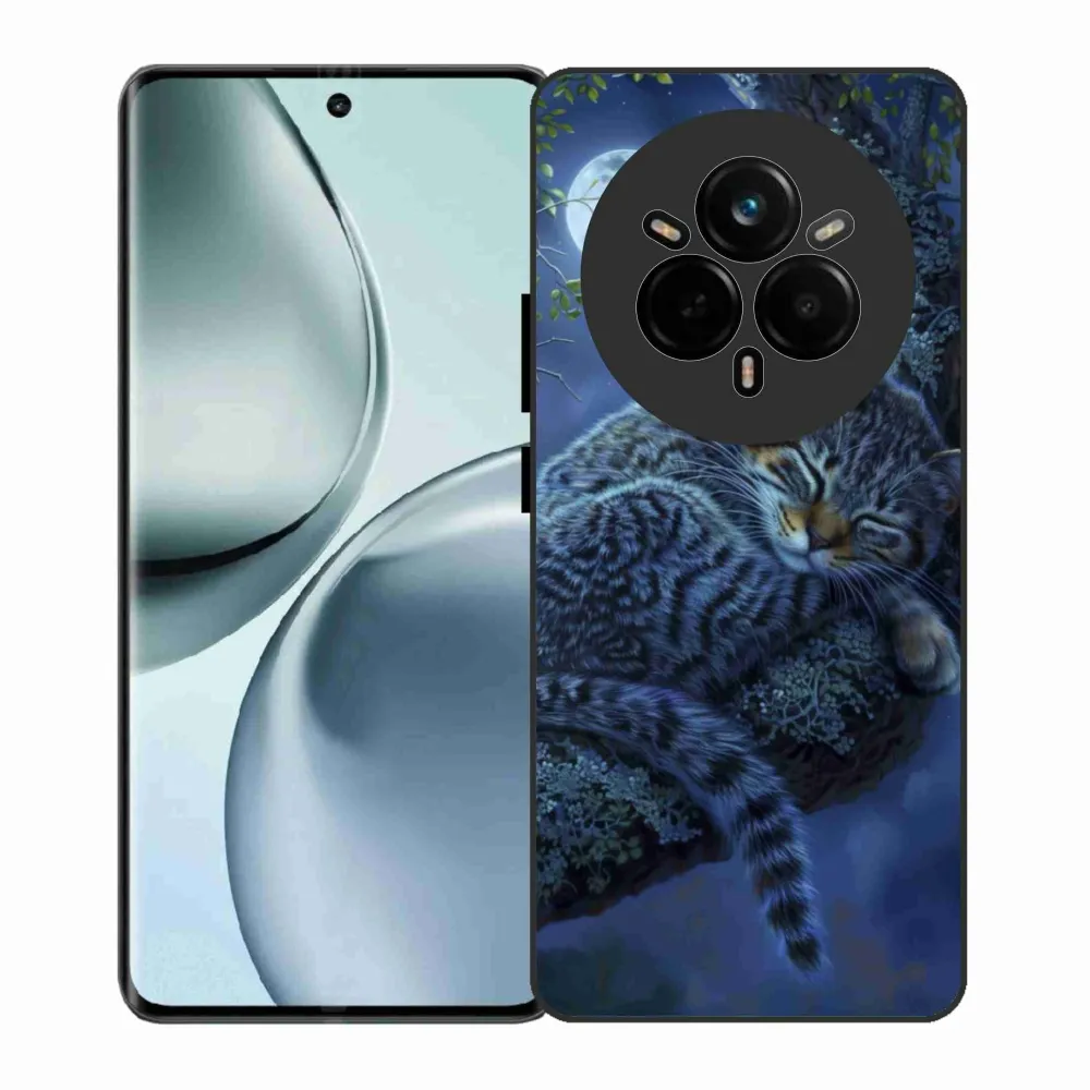 Mačacie púzdro na Realme 14 Pro 5G - spiaca mačka poskytuje všetky výhody gélových obalov, a to v zaujímavom dizajne.