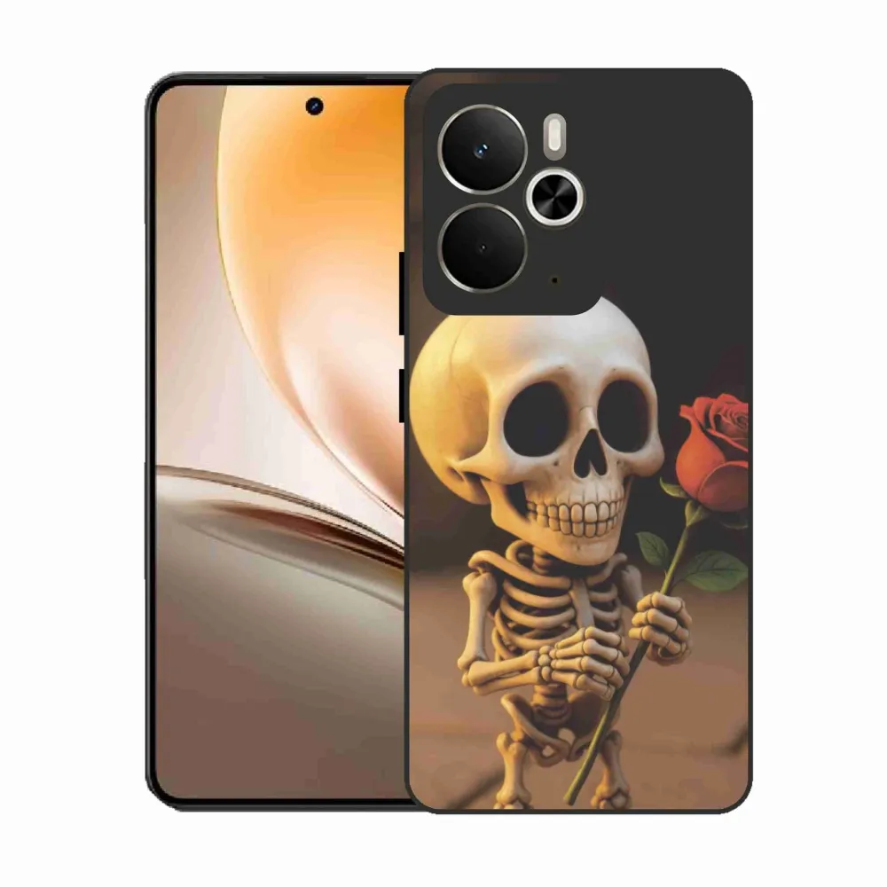Púzdro na Realme 14T 5G/14 5G - kostlivec s ružou poskytuje všetky výhody gélových obalov, a to v zaujímavom dizajne.