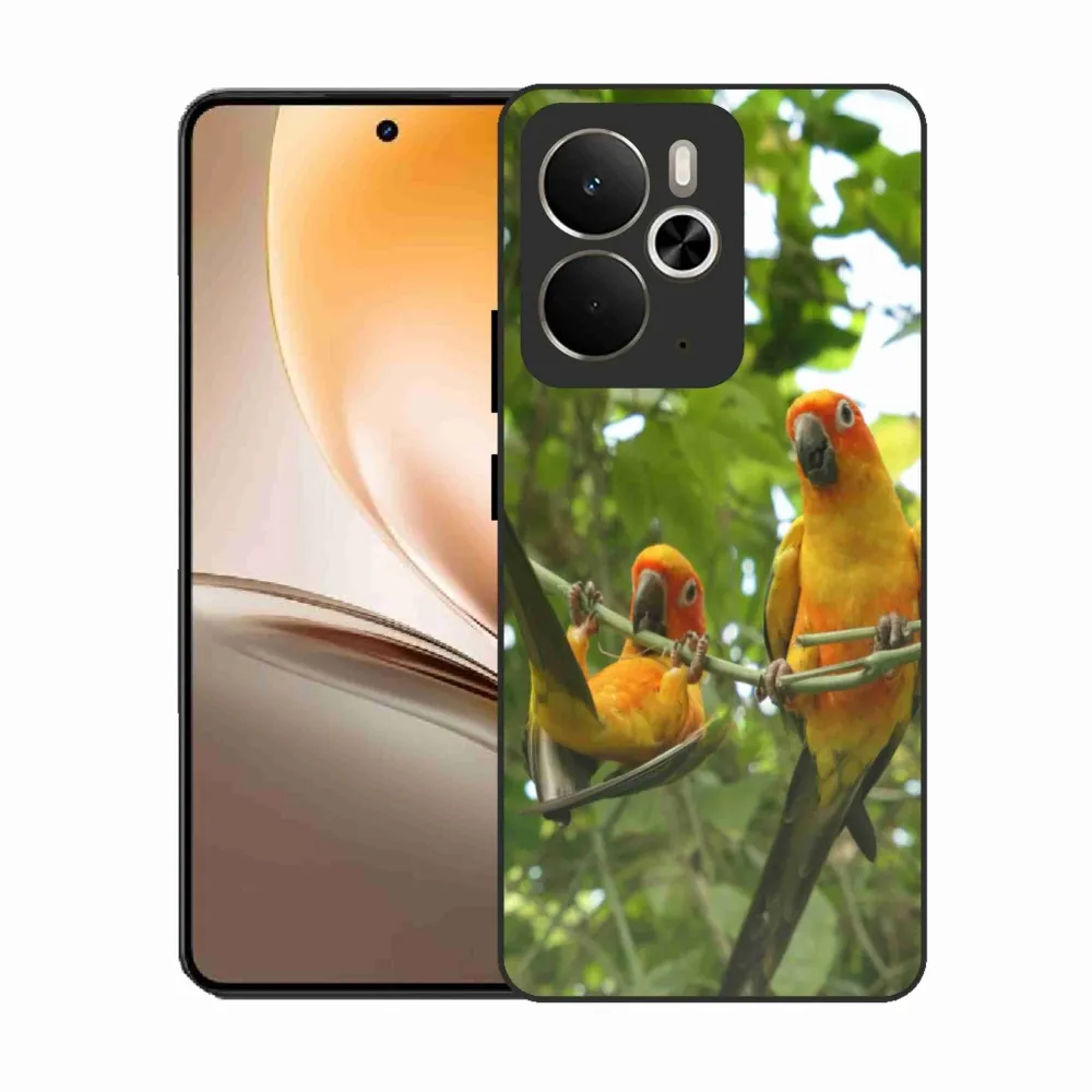 Vtáčie puzdro na Realme 14T 5G/14 5G - papagáje aratingy poskytuje všetky výhody gélových krytov, a to v zaujímavom dizajne.
