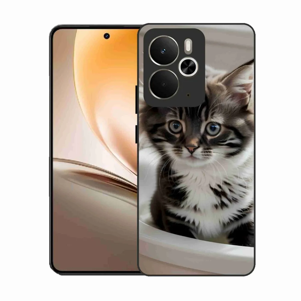 Mačacie púzdro na Realme 14T 5G/14 5G - zvedavé mačiatko poskytuje všetky výhody gélových obalov, a to v zaujímavom dizajne.