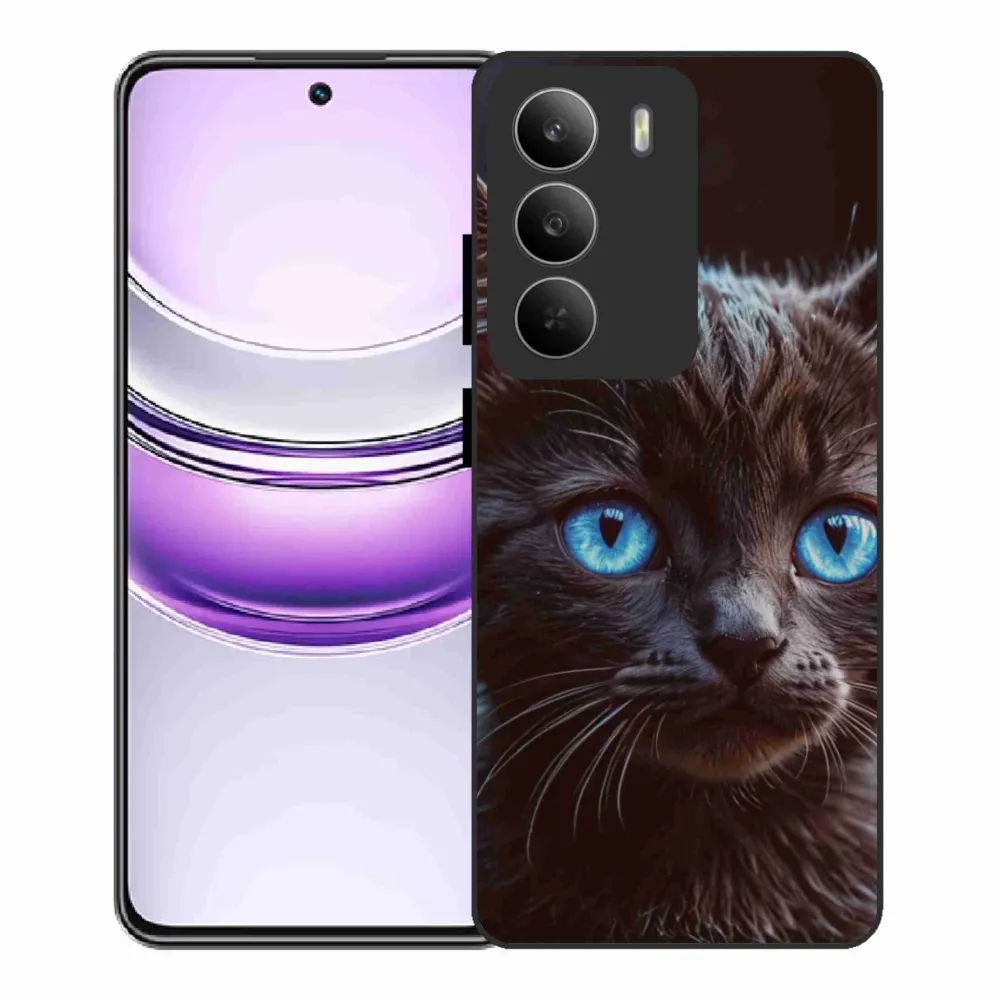 Pružný gélový obal mmCase s obrázkom na Realme 14x 5G - čierne mačiatko 2