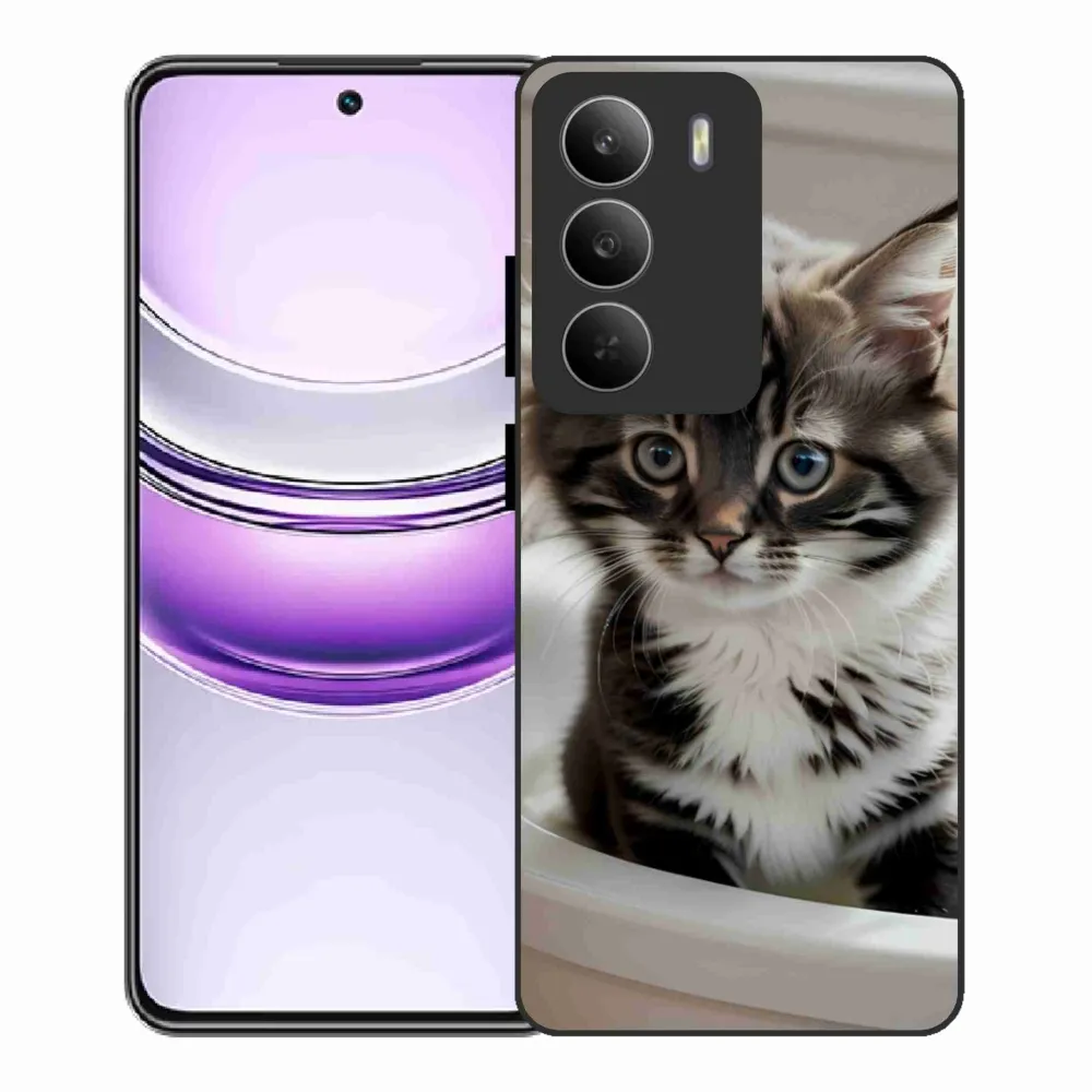 Mačacie púzdro na Realme 14x 5G - zvedavé mačiatko poskytuje všetky výhody gélových obalov, a to v zaujímavom dizajne.