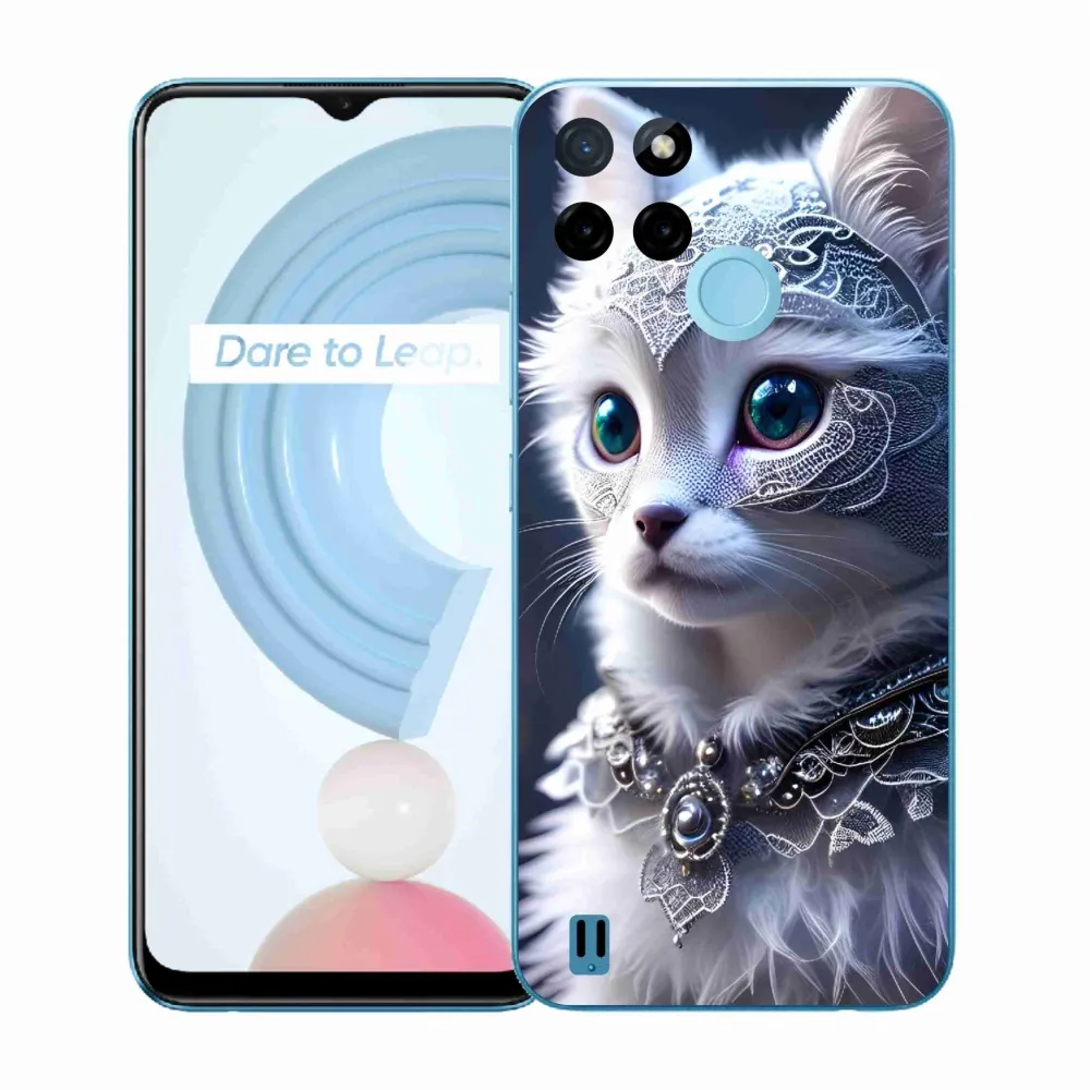Mačacie púzdro na Realme C21Y/C25Y - biela mačka poskytuje všetky výhody gélových krytov, a to v zaujímavom dizajne.