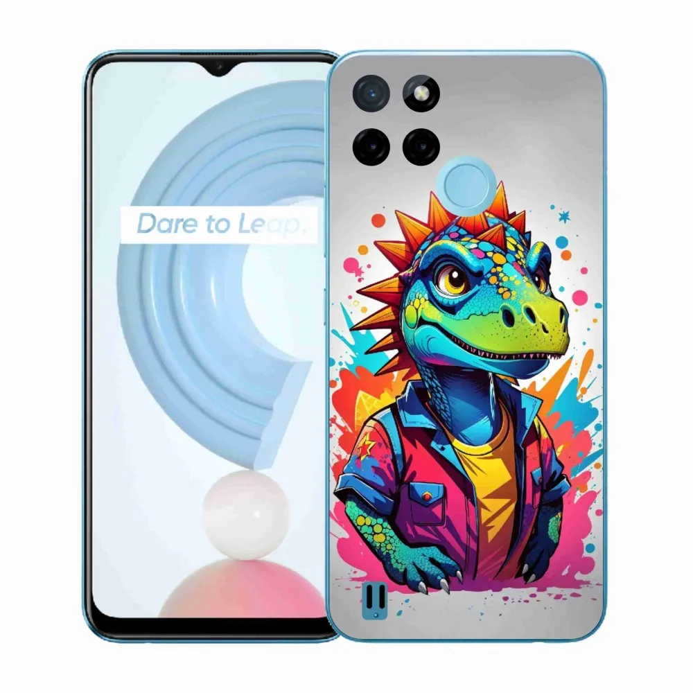 Zvieracie púzdro na Realme C21Y/C25Y – farebný dinosaurus poskytuje všetky výhody gélových obalov, a to v zaujímavom dizajne.