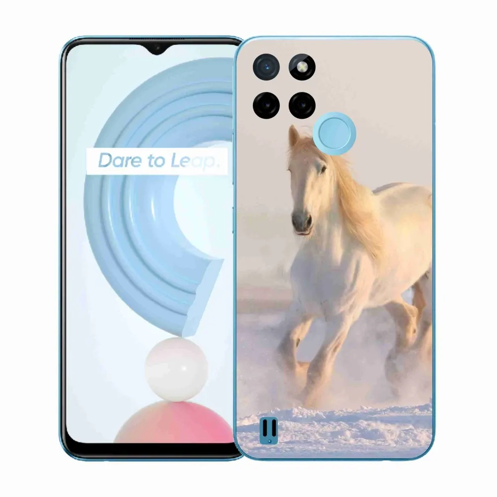 Pružný gélový obal mmCase s obrázkom na Realme C21Y/C25Y - kôň v snehu