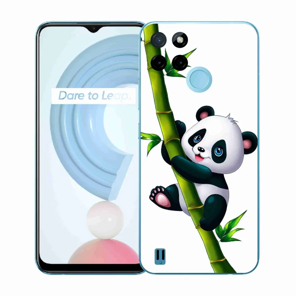 Pružný gélový obal mmCase s obrázkom na Realme C21Y/C25Y - panda na bambuse