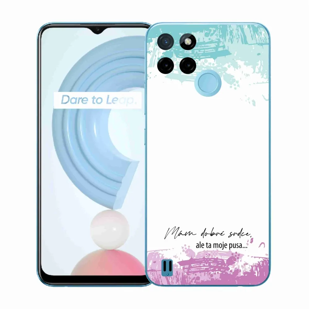 Pružný gélový obal mmCase s obrázkom na Realme C21Y/C25Y - vtipný text 3 biele pozadie