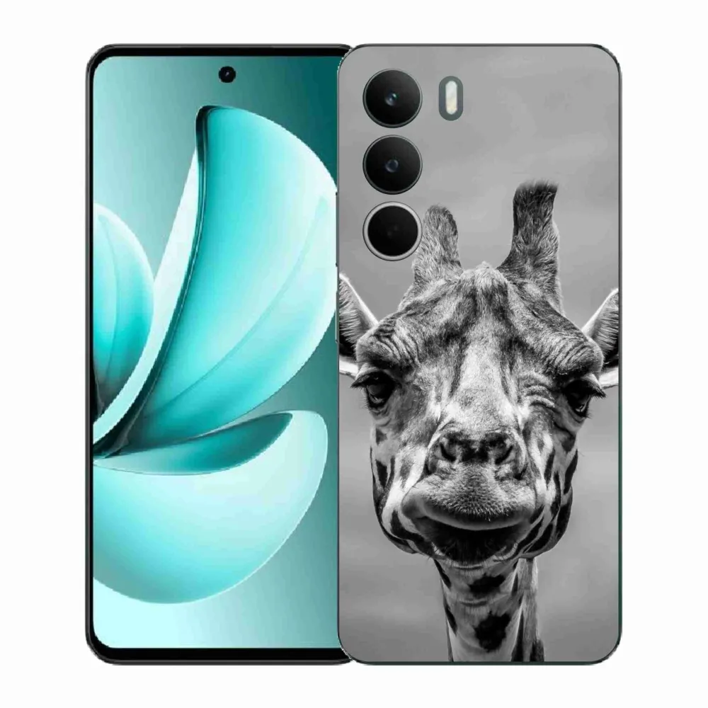 Zvieracie púzdro na Realme C71 - čiernobiela žirafa poskytuje všetky výhody gélových obalov, a to v zaujímavom dizajne.