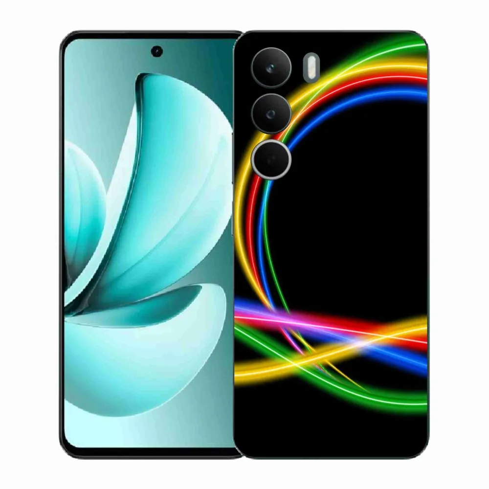 Abstraktné puzdro na Realme C71 - neónové kruhy poskytuje všetky výhody gélových krytov, a to v zaujímavom dizajne.