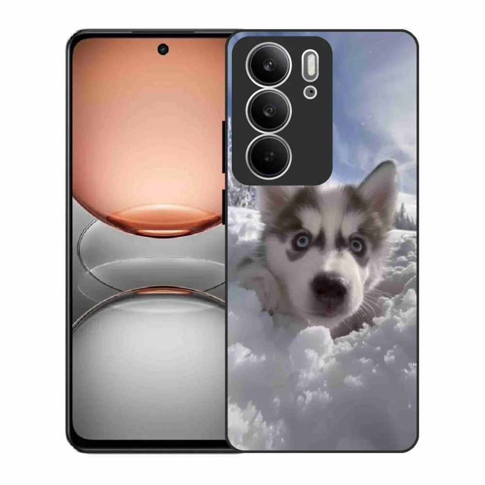 Psie púzdro na Realme C75 - husky v snehu poskytuje všetky výhody gélových obalov, a to v zaujímavom dizajne.